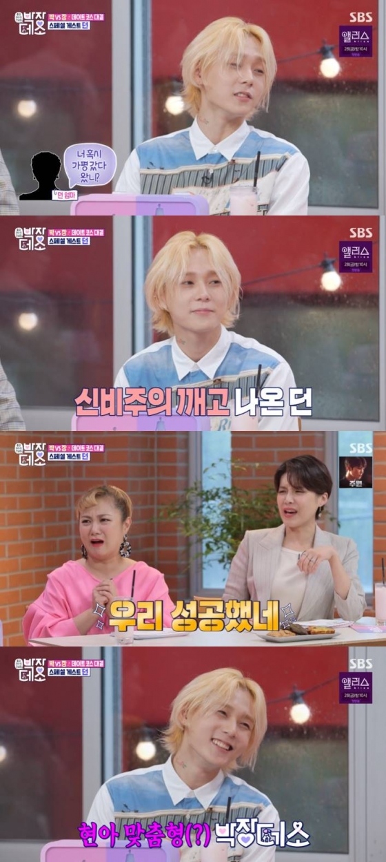 22일 오후 방송된 SBS 예능프로그램 '박장데소'에서는 가수 현아와 공개 열애 중인 던이 스페셜 평가단으로 출연했다.