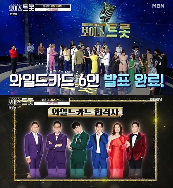 28일 오후 방송된 MBN 예능프로그램 '보이스트롯'에서는 3라운드 '1:1 데스매치'가 끝난 후 탈락자 중 4라운드에 진출할 '와일드 카드'의 주인공 6명이 공개됐다.
