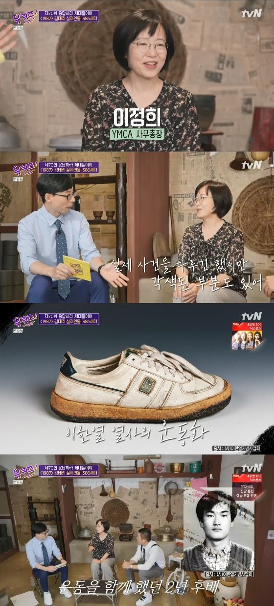 영화 '1987' 속 배우 김태리가 연기한 연희 역의 실제 인물인 이정희 YMCA 사무총장이 '유 퀴즈 온 더 블럭'에 출연했다.