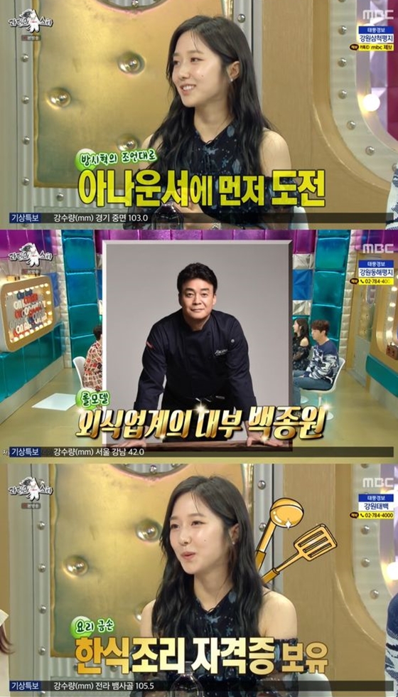 방 대표의 조언대로 아나운서에 도전한 이혜성은 "지금도 요리에 관심이 많아 한식조리사 자격증도 있다"면서 "롤모델은 백종원"이라고 고백해 눈길을 끌었다.
