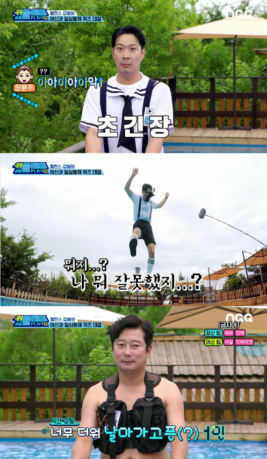 '바다의 여신' 톱 모델 장윤주, 아이린과 해양소년단 멤버들은 플라잉 체어의 등장에 '멘붕'에 빠졌다고 한다. 금지어 언급 시 순식간에 멤버들을 물속으로 날려보내는 플라잉 체어와 어느 한쪽을 쉽게 결정할 수 없는 극강의 '밸런스 게임'을 결합한 '밸런스 갑붕쏴' 퀘스트는 시청자들의 심장을 쫄깃하게 만들 예정.