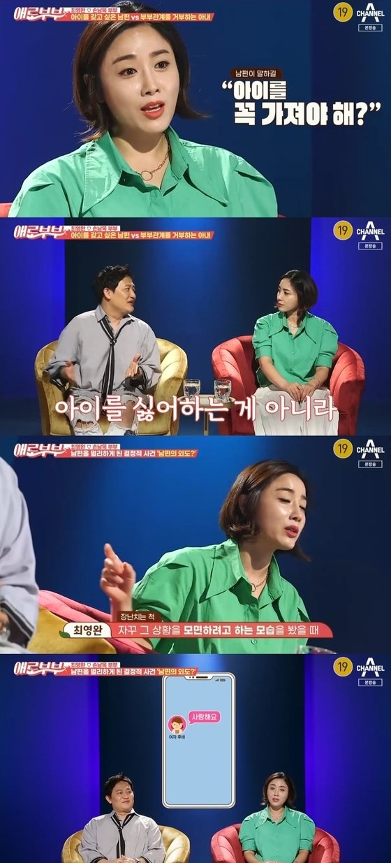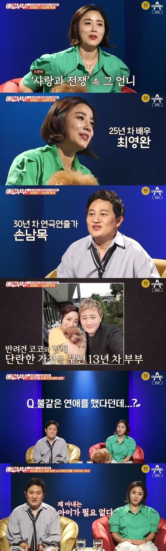 지난 7일 오후 방송된 채널A, SKY채널 공동제작 예능프로그램 '애로부부'에서는 손남목, 최영완 부부가 2세 문제에 대해 팽팽한 의견 대립을 겪는 모습이 그려졌다.