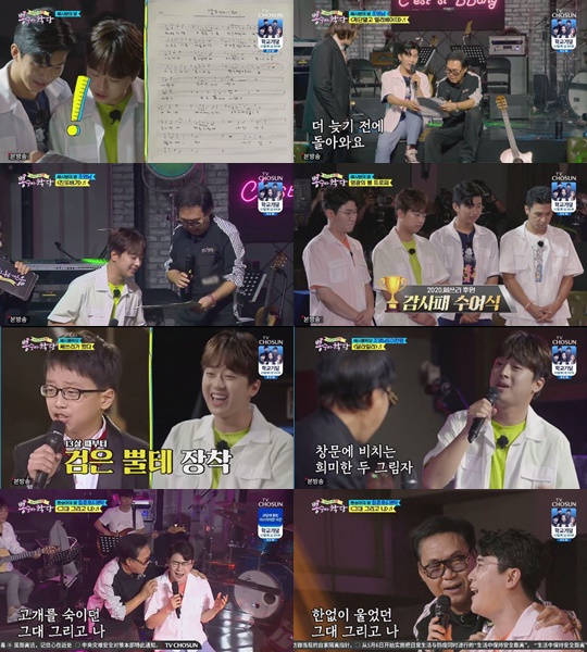 9일 오후 방송된 TV조선 예능 프로그램 '뽕숭아학당'에서 F4 임영웅,영탁,이찬원,장민호는 7080 포크 레전드 쎄시봉을 만났다.