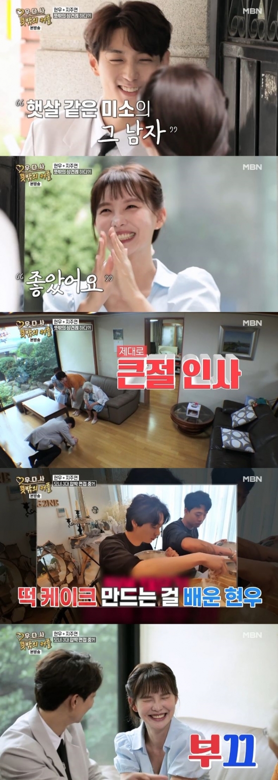 이날 현우는 지주연의 집을 찾았다. 초인종 소리에 대문을 열어준 지주연은 "화사하게 웃으면서 서 계셨다. 좋았다"며 현우의 첫인상을 전했다. 현우는 "예뻤다"라며 지주연의 첫인상을 설명했다.