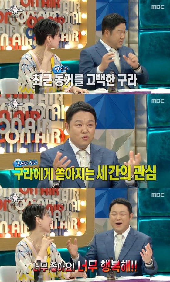 최근 여자친구와의 동거를 밝힌 김구라가 이에 공감하며 "세간의 관심을 소재화 하려다 보니, 내 나이가 50이 넘기도 했고 아이도 있지 않냐. 내가 30대 중반의 정서처럼 '너무 좋아요 너무 행복해 여보!' 이렇게 하기가 좀 그렇다"라고 말했다.