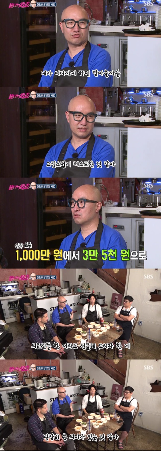 이어 최재훈은 아르바이트로 간 식당에서 우연찮게 주방 보조를 시작하면서 주방 일을 배운 사연을 풀었다. 또 브루노는 "나도 잘 될줄 알고 할리우드를 갔는데, 영화는 나오지도 못했다. 현지 일식당에서 3년간 서빙만 했다"고 힘들었던 과거를 털어놨다.