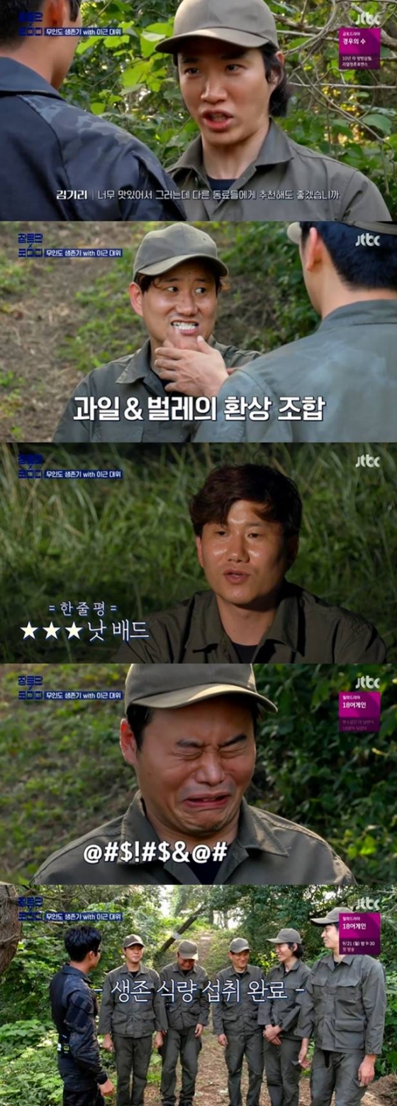 19일 오후 방송된 JTBC 예능프로그램 '장르만 코미디'의 '장르만 연예인' 코너에서는 개그맨 김기리, 김성원, 서태훈, 이세진, 임우일이 '가짜사나이' 이근 대위에게 무인도 생존 훈련을 받았다.