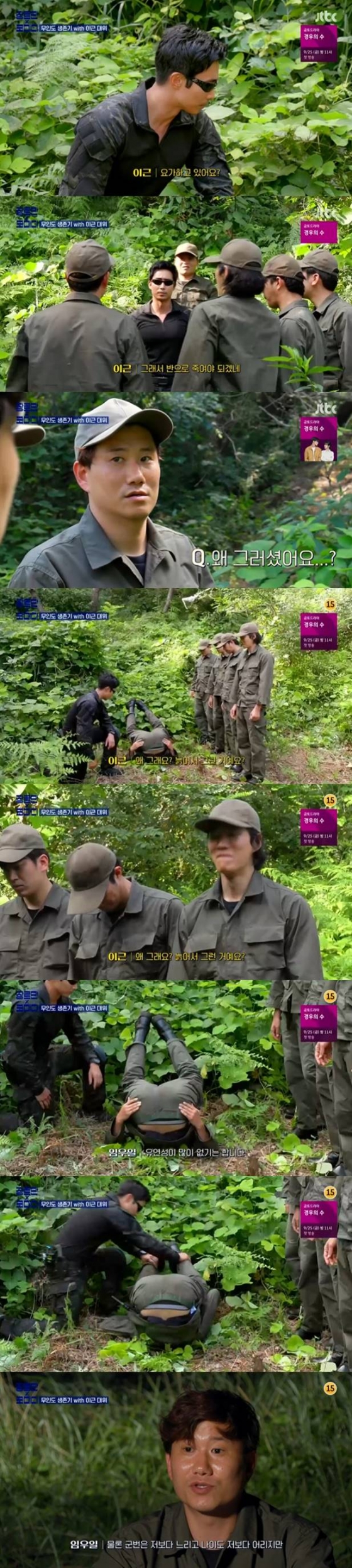이후 임우일은 물을 만드는 과정에서 교관의 말을 무시하고 "물이 생기지 않을 것"이라고 대답해 벌칙을 받았다. 이근 대위는 "반으로 죽여야 되겠네"라며 임우일의 몸을 반으로 접히게 했다. 임우일이 허둥대자 이근 대위는 "요가하는 거야? 늙어서 힘이 없는 거야?"라며 임우일의 몸을 반으로 접었다.