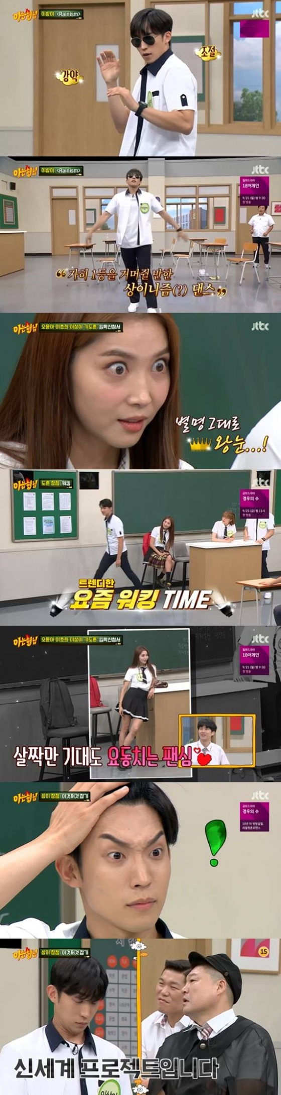 이 밖에도 이상이는 눈썹을 앵그리 버드 이상 기울기의 'V'자로 만드는가 하면, 영화 '신세계'의 주진모 성대모사와 이선균 성대모사를 하는가 하는 등 개인기 부자로 형님들을 사로잡았다.