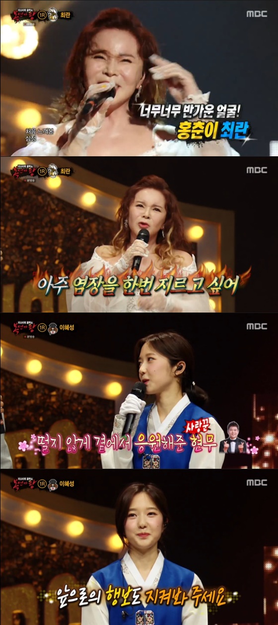'서당 개'의 정체는 전현무와 공개 열애 중인 프리랜서 이혜성이었다. 이혜성은 "일단 이런 큰 무대에 서는 게 너무 영광이다. 제 노래 실력에도 불구하고 초대 해주셔서 감사하게 생각한다"라고 소감을 밝혔다. MC 김성주는 "전현무의 사랑스러운 그녀라고 소개를 했는데, 당사자는 부담이 없는가?"라고 물었다. 이혜성은 "사실 부담이 많이 간다. 지금까지 방송에서 보여드린 모습이 별로 없어서 누구 누구의 여자친구로 인식하는 것 같다. 그건 앞으로 제가 헤쳐 나가야 할 과제인 것 같다. 다양한 모습을 보여주면 저 자체에 대한 관심을 가져주지 않을까 싶다"라고 답했다.