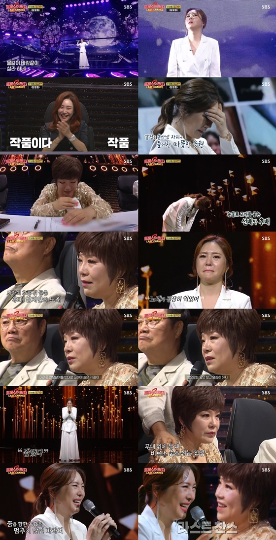 임지안은 노래를 포기할 생각도 했지만, 힘든 걸 이겨내기 위해 다시 무대에 섰다. 그는 김용임의 '훨훨훨'을 선곡해 마음속 한을 쏟아내는 듯한 무대를 선보였다. 호소력 짙은 그의 목소리에 '트롯신'과 랜선 심사위원들 모두 감탄했다.
