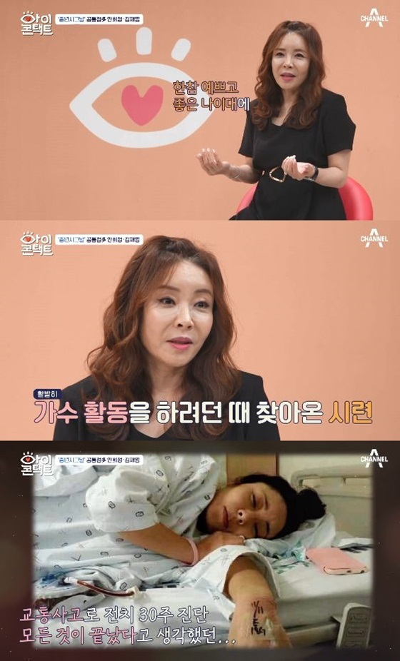 안희정은 지난 23일 오후 방송된 채널A 예능 프로그램 '아이 콘택트'에 출연해 "한참 예쁘고 좋은 나이에 (가수) 활동을 하려고 하던 시기에 교통사고가 크게 났다"고 말했다. 당시 전치 30주 진단을 받았다는 그는 "여자로도 끝났고, 가수로도 끝났다고 생각했다"고 고백했다.
