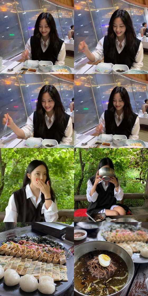 공개된 사진 속 효민은 음식을 복스럽게 먹고 있다. 젓가락질을 하면서 어색하게 웃다가도 맛있게 먹는 모습을 보여 보는 이로 하여금 침샘을 자극했다.