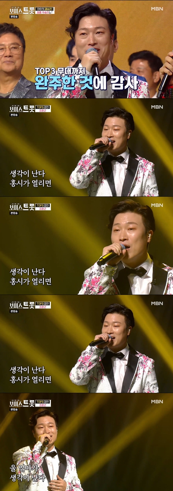 조문근은 지난 25일 종영한 '보이스트롯'에서 박세욱, 김다현에 이어 최종 3위에 올랐다. 그는 결승전 마지막 무대에 나훈아의 '홍시'를 불렀고, 가족과 행복한 기억을 되새기게 하며 TOP3에 등극했다.