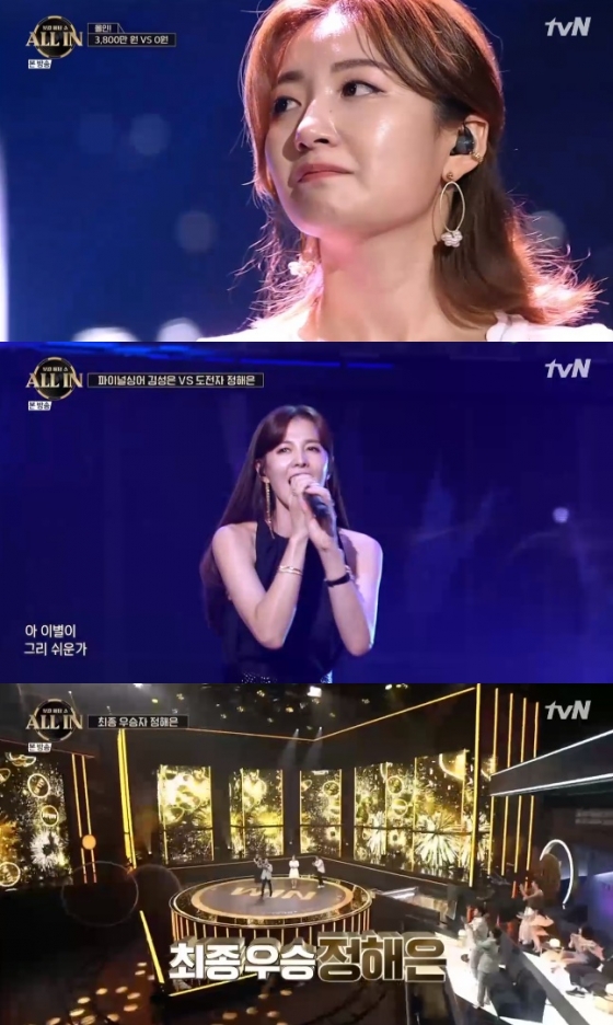 파이널 대결 곡은 노영심의 '그리움만 쌓이네'로 공개된 가운데 파이널 싱어의 정체는 배우 김성은이었다. 정해은은 돈을 다 잃을 수도 있지만 피하지 않고 대결을 선택했다. 정해은은 뒤늦게 공개된 음치로 유명한 김성은의 정체를 확인하고 함박 웃음을 지었다. 최종 우승은 정해은이 차지했다.