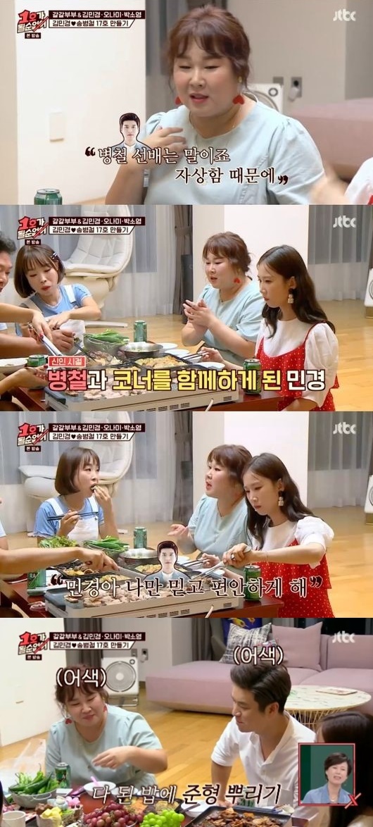 이날 김민경은 짝사랑 상대였던 송병철을 언급했다. 김민경은 "내가 무대 공포증이 있을 때 (송병철이) '걱정 마. 나만 믿어'라고 다정하게 얘기해줬다"고 전했다.