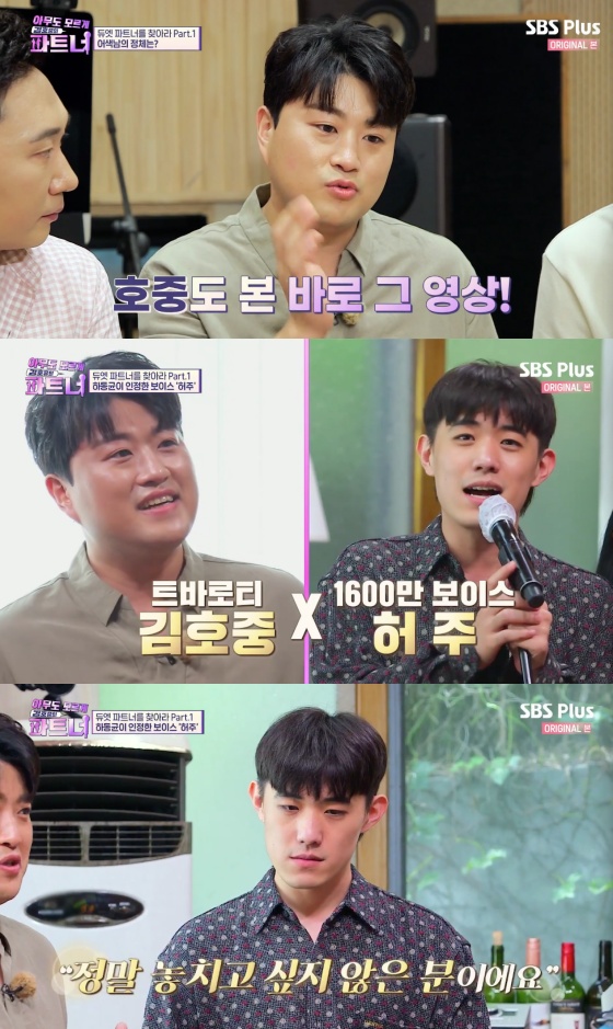 '아무도 모르게 김호중의 파트너'에서 김호중이 참가자 허주의 노래를 듣고 영상을 본 적 있다고 밝혔다.