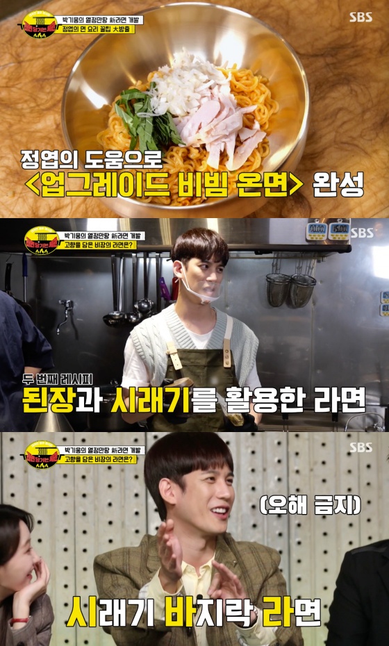 30일 오후 방송된 SBS 예능 프로그램 '대국민 공유 레시피, 라면 당기는 시간'에는 배우 박기웅이 등장해 가수 정엽과 함께 새로운 라면을 개발했다.