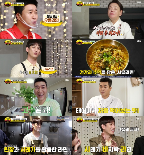 30일 오후 방송된 SBS 예능 프로그램 '대국민 공유 레시피, 라면 당기는 시간'에는 김종민과 박기웅이 라면 레시피로 대결을 펼치는 장면이 담겼다.