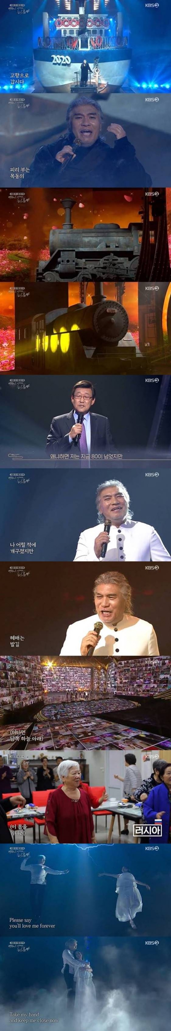 이어 그는 "뜨거운 응원이 느껴지면 할 것은 천지빼까리다. 오늘 밤새도록 할 수도 있다"며 "여러분 정말 우리에게는 영웅들이 있다. 코로나 때문에 난리를 칠 때 우리 의사, 간호사 여러분, 그 외의 관계자, 의료진 여러분들이 우리의 영웅이다. 이분들이 없었으면 우리는 이걸 어떻게 헤쳐나갔을까 싶다. 의료진 여러분들을 위해 큰 박수와 대한민국을 외쳐달라"며 2부 '사랑'을 열었다.