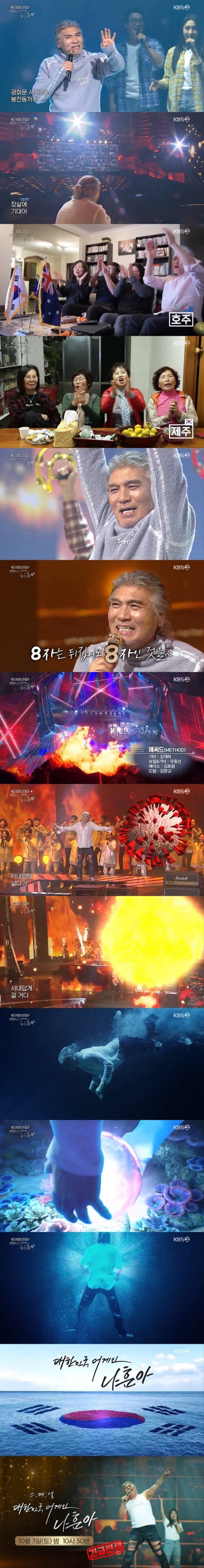 그는 "코로나19에 대응하는 우리 국민들이 말을 잘 들었다. 여러분 긍지를 가지셔도 된다. 분명히 이 코로나19를 이겨낼 수 있다. 그래서 제가 제목을 '대한민국 어게인'이라고 만들었다. 여러분 사랑합니다 고맙습니다"라며 록스피릿을 담은 트로트 '사내'를 열창했다. 무대 말미엔 코로나 바이러스가 CG로 터졌고, 나훈아가 물에 뛰어들어 '희망'을 건져 올렸다.
