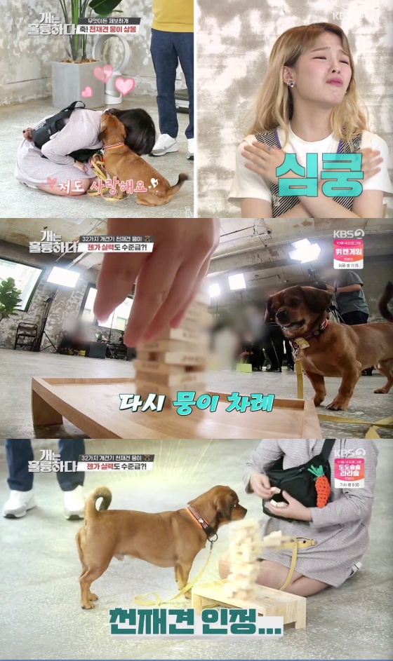 5일 오후 방송된 KBS 2TV 예능 프로그램 '개는 훌륭하다'의 '무엇이든 제보하개' 코너에는 사람도 어려워하는 보드게임을 해내는 천재견 뭉이가 개견기를 뽐냈다.