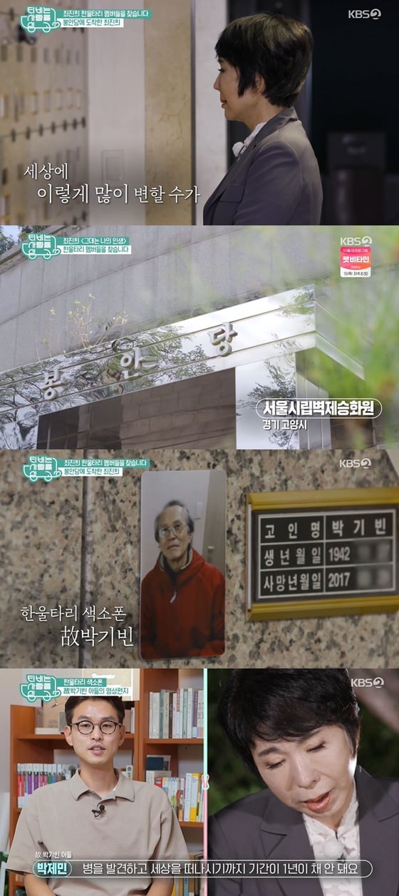 이후 최진희를 데리고 도착한 곳은 서울의 한 봉안당이었다. 최진희는 이곳에서 故 박기빈의 유골함을 확인할 수 있었다. 이를 본 최진희는 "세상에 이렇게 많이 변했다. 사진을 보니까 정말 많이 아프셨던 것 같다. 세월이 너무 많이 흐른 것 같아 허무하다. 여기까지 오게 될 줄은 몰랐다"라며 눈물을 보였다.
