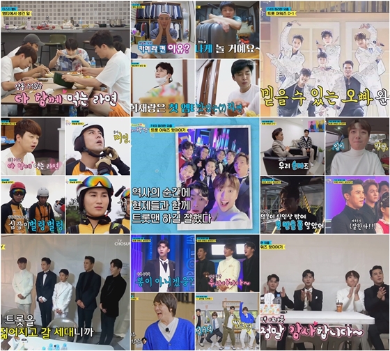 이날 방송에서 트롯맨 F4(임영웅, 영탁, 이찬원, 장민호)는 '미스터트롯' 멤버 정동원-김희재와 떠난 '뽕학당 첫 MT'를 낱낱이 공개하는 데 이어, 어디서도 볼 수 없는 '2020 트롯 어워즈' 생방송 뒷이야기로 안방극장의 '뽕'심을 대통합시켰다.