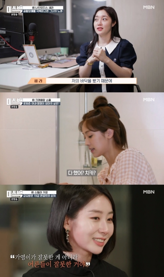 먼저 나인뮤지스 출신 세라는 당시 소속사의 명령에 복종했었어야 했다고 말했다. 그룹 탈퇴 후 생활비 때문에 은행 대출까지 받았다는 그는 "아이돌 수명이 너무 짧다. 정년퇴직하면 이런 기분일까"라고 고민을 토로했다. 그러면서 공황장애와 우울증을 치료 중이라고 밝히며 이로 인해 고통받고 있는 일상을 공개했다. 자신의 민낯을 모두 공개한 세라는 "저같이 약한 사람도 할 수 있는 걸 보여주고 싶다"며 이소라의 '제발'을 선곡해 무대를 꾸몄다.