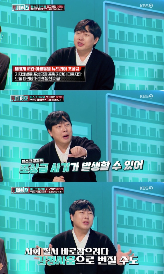 이날 두 번째 뉴스는 '마스크를 미착용한 사람을 신고하면 한 건당 포상금으로 3만 원을 준다'는 내용이었다.