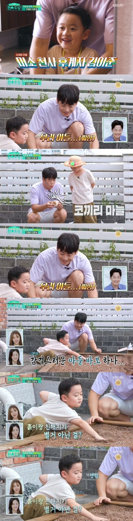 아들 이준이의 모습에 김재원은 꿀이 뚝뚝 떨어지는 눈으로 아들 바보의 모습을 선보였다.