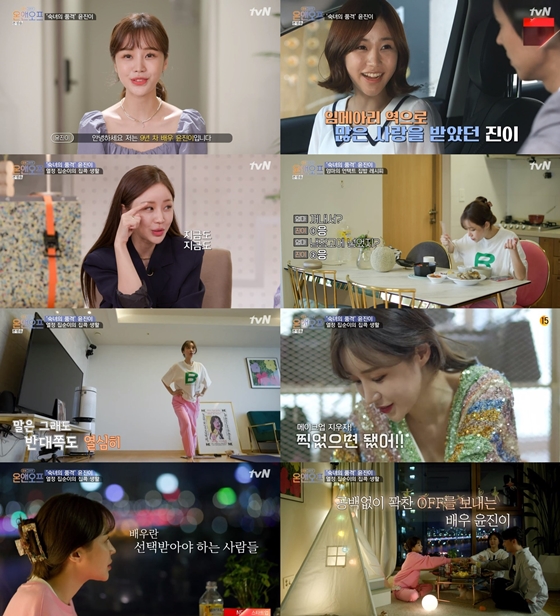 지난 17일 방송된 tvN 예능프로그램 '온앤오프'에서는 코로나 시대를 이겨내는 9년 차 배우 윤진이의 집순이 일상이 공개됐다.