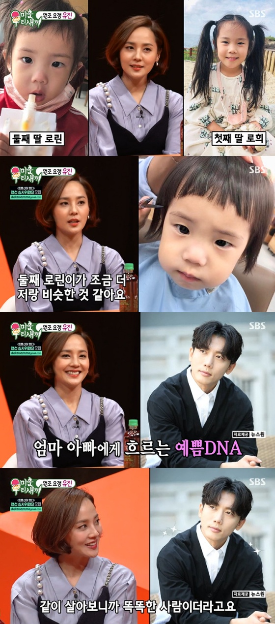 이날 유진은 두 딸이 누구를 더 닮았냐는 물음에 "둘째 로린이가 조금 더 외모나 성격이 저와 가깝고, 첫째는 아빠와 많이 닮았다"고 답했다.