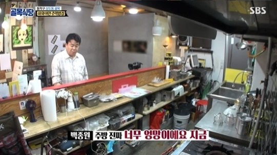 백종원은 "본의 아니게 주방을 봤다"라고 말하고 심각한 표정을 지으며 "사장님이 여기 와서 한번 보세요. 이게 먹히겠나. 주방이 너무 엉망"이라고 말했다.