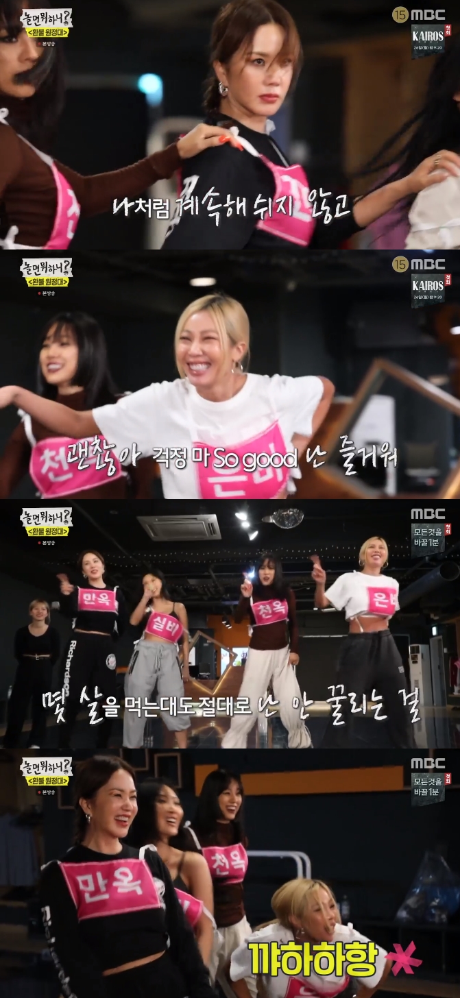 24일 오후 방송된 MBC 예능프로그램 '놀면 뭐하니'에서는 엄정화, 이효리, 제시, 화사의 '환불원정대'가 데뷔 무대를 앞두고 안무를 연습하는 모습이 그려졌다.