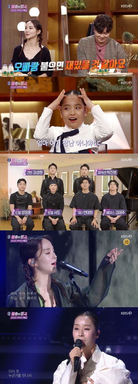 24일 방송된 KBS 2TV 예능프로그램 '불후의 명곡'에서는 '2020 국악인 특집'으로 대한민국을 대표하는 국악인 김용우, 고영열 밴드, 박애리X남상일, 김태연, 송소희, 서도밴드가 경연을 펼쳤다.