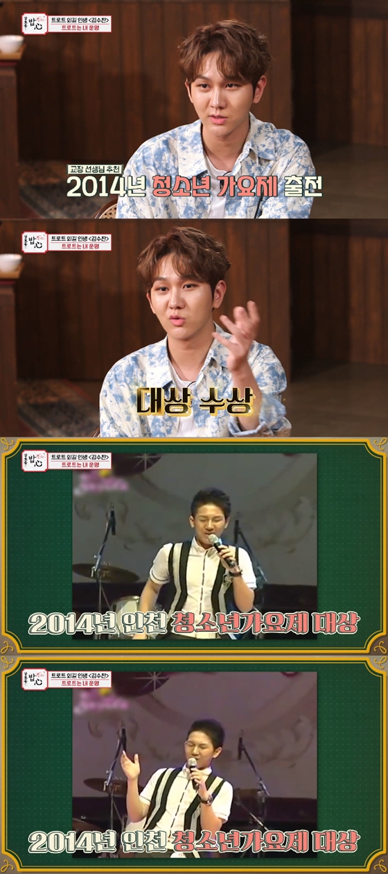 이날 '밥먹다'에서는 김수찬이 고등학교 시절부터 트로트 가수에 대한 꿈이 있었다는 이야기를 했다. 김수찬은 고등학교 1학년 때 담임 선생님 결혼식 축가를 불렀다고 했다. 이후 교장 선생님 추천으로 청소년 가요제에 출전하게 됐다고 전했다.