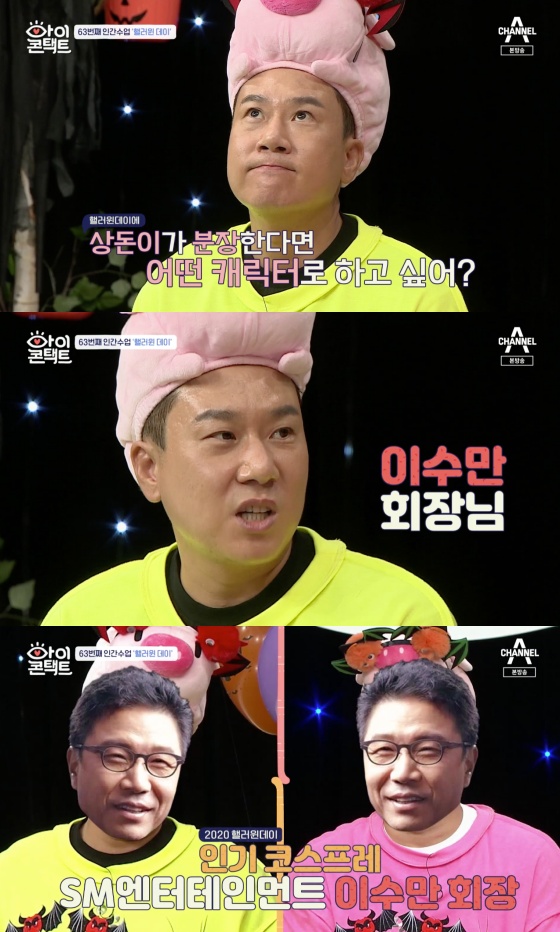 28일 오후 방송된 종합편성채널 채널A '아이콘택트'에는 강호동, 이상민, 하하가 SM엔터테인먼트의 핼러윈 파티에 대해 대화하는 장면이 담겼다.