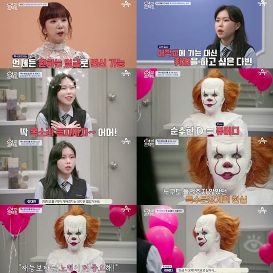 이후 이다빈의 앞에는 섬뜩한 페니와이즈의 모습으로 분장한 퓨어디가 나타났고, 직접 만든 '베놈' 가면을 쓰고 있던 이다빈은 "누구세요?"라며 깜짝 놀랐다. 하지만 퓨어디가 "누구인 것 같아?"라고 묻자, 이다빈은 "순수한 D 아니세요?"라며 감격했다. 이어 두 사람은 특수분장사 일에 대한 현실적인 조언 타임을 앞두고 눈맞춤을 가졌다.