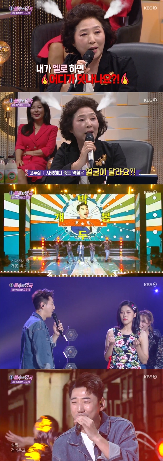 고두심은 처음 제주도에서 상경했을 때를 떠올리며 "어디가 숲인지, 어디가 늪인지 아무도 알려주지 않았다"고 조용필의 '꿈'을 선곡한 이유를 밝혔다. 고두심은 이어 '백만송이 장미'의 선곡 이유를 통해 멜로 연기를 하지 못한 것에 대한 아쉬움을 드러냈다. 고두심은 "이러다 여배우가 멜로 못해보고 가겠다. 처음부터 엄마였다. 이제는 남편도 없도 애만 무슨 5명 끌고 가는 엄마만 시킨다"며 아쉬워했다.