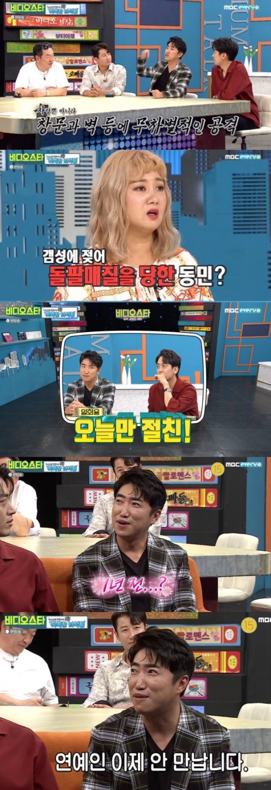 '비디오스타'에서 개그맨 장동민이 마지막 연애와 '돌팔매질 테러'를 당한 적 있다고 털어놔 충격을 안겼다.
