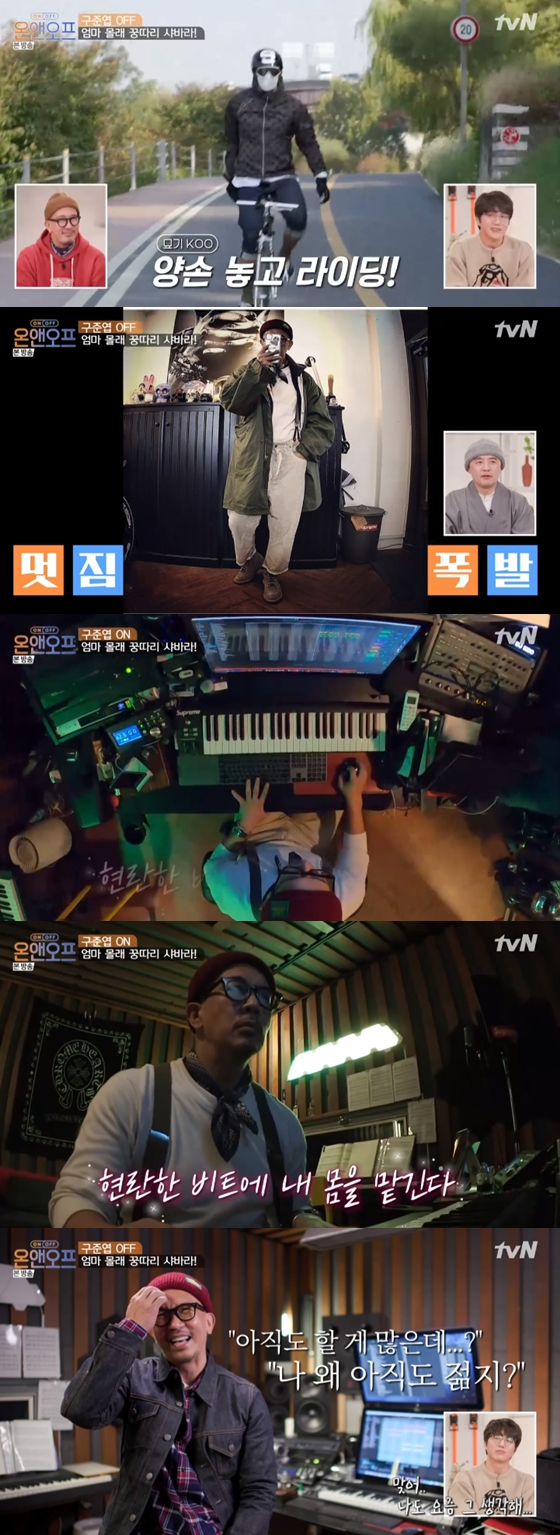 구준엽은 이어 자전거를 타러 향했다. 구준엽은 "운동 다시 시작해야겠다고 생각했는데, 너무 재밌어서 타게 됐다"며 양손을 놓고 라이딩을 하다 액션캠으로 촬영까지 하는 등 '바이시 KOO'의 모습을 선보였다.