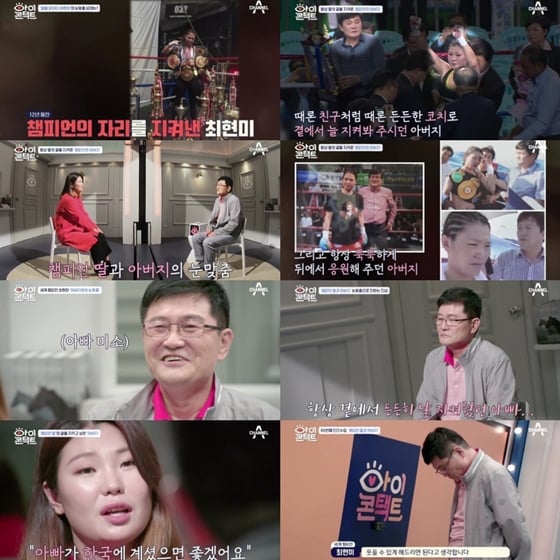 지난 11일 방송된 채널A '아이콘택트'에서는 대한민국 최초로 2체급을 석권한 '탈북 복서' 최현미가 아버지의 초대를 받고 눈맞춤방을 방문했다.