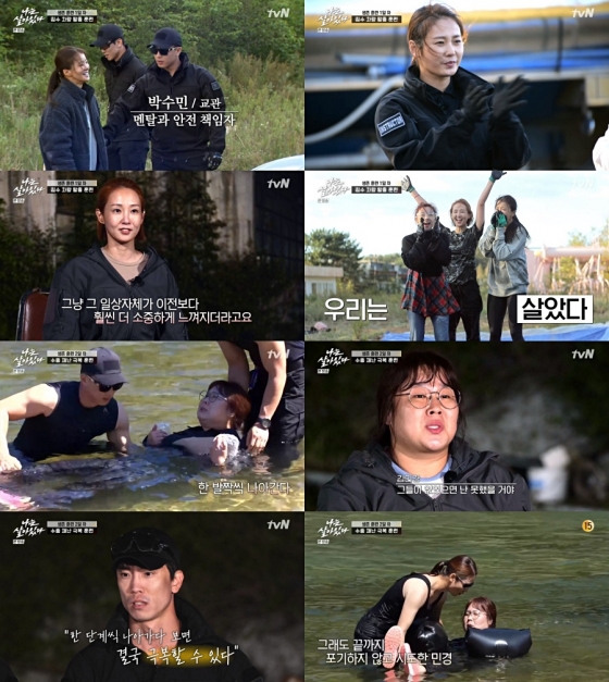 이어 2회 방송에서는 침수 차량 탈출 훈련과 부력 도구 만들기 등 실생활에서 배우기 어려운 다양한 재난 상황 생존 팁이 공개됐다. 특히 '근수저'라는 별명으로 놀라운 운동실력을 자랑한 김민경은 어렸을 적 트라우마로 인해 물 공포증을 갖고 있다며 두려움에 눈물까지 보였다. 이에 교관들은 적극적으로 나서 김민경이 간단한 부력 도구만을 이용해 스스로 물에 뜨는 수중 훈련까지 성공할 수 있도록 이끌어냈다. 무엇보다 교관들의 인내심과 '할 수 있다'는 믿음을 주는 부드러운 리더십이 훈련생의 트라우마까지 극복시킨 것.