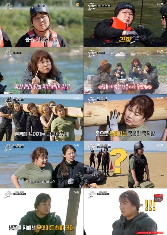 이후 바닷가에서 자연 재난 생존훈련이 이어졌다. 목봉 훈련에 돌입한 김민경은 근수저의 면모를 과시했으나, 이내 인간 목봉으로 뽑혀 멤버들의 어깨에 올려지는 놀라운 경험을 하게 됐다. 김민경의 무게에 멤버들이 쓰러지자 "웃기려고 하지 마. 이거 예능 아니잖아"라며 큰 웃음을 안겼다. 하지만 훈련이 끝나자 "미안해. 내가 무거워서 미안해"라며 마사지를 서비스해 훈훈함을 선사했다.