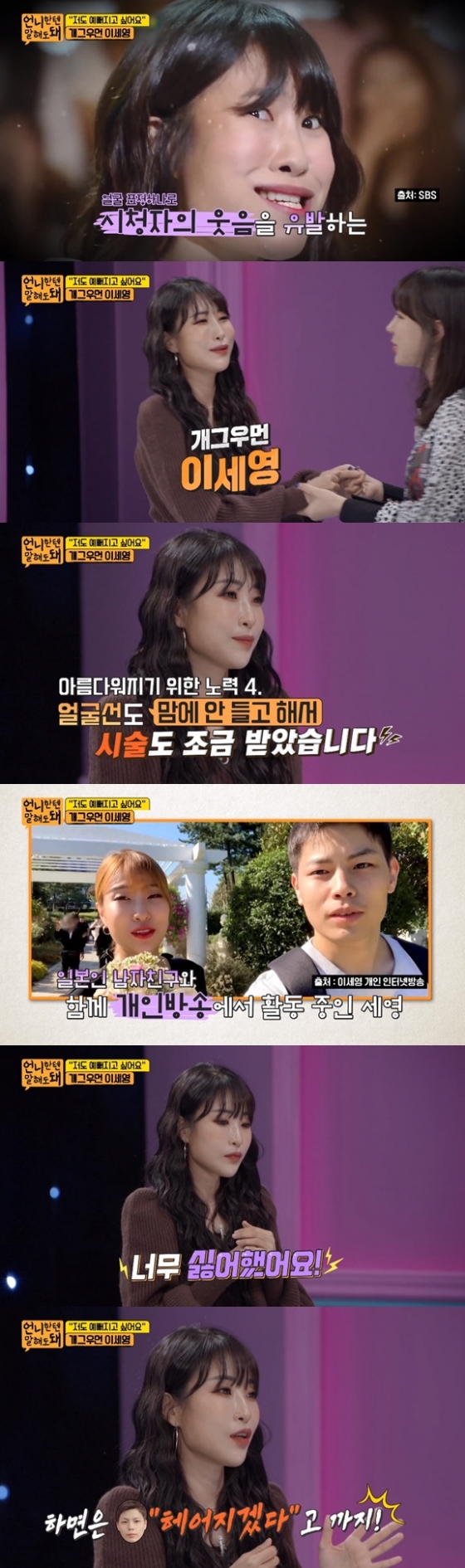 이세영은 26일 오후 방송 된 SBS플러스 '언니한텐 말해도 돼'에 출연해 12월 성형수술을 하기로 결심했다고 밝혔다.