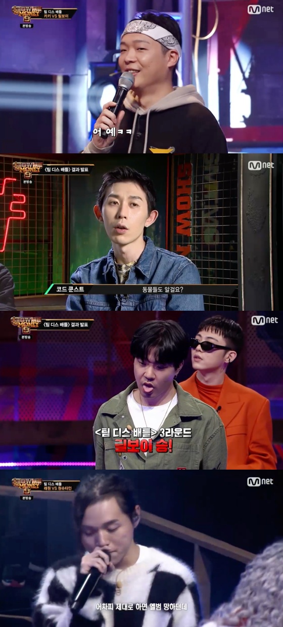 27일 오후 방송된 엠넷 예능 프로그램 '쇼미더머니9'에는 팔로알토X코드쿤스트 팀(카키, 래원, 스윙스, 맥대디)과 자이언티X기리보이(릴보이, 원슈타인, 스카이민혁, 칠린호미)의 디스전이 벌어졌다.