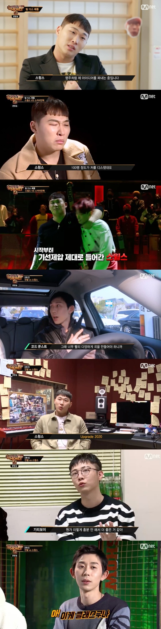 이날 스윙스는 스카이민혁과 디스전을 벌이게 됐다. 힙합 거물 스윙스와 힙합 병아리 스카이민혁의 대결에 모두가 집중했다. 특히 스윙스에게는 이겨야 본전, 지면 물러날 곳이 없는 싸움이었다.