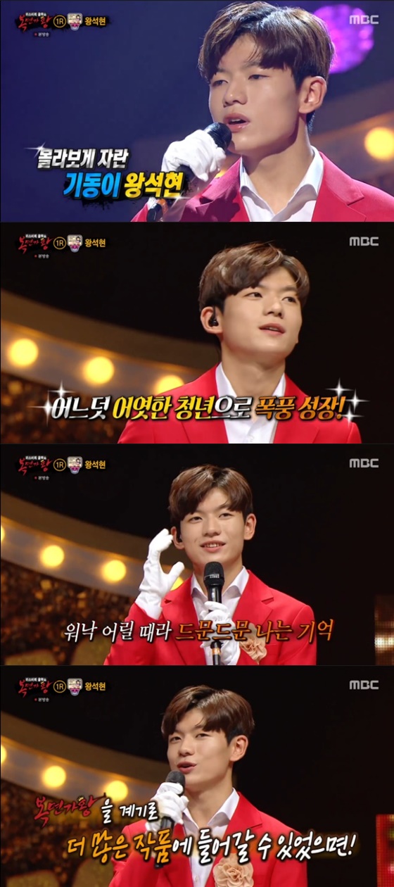 '봉숙이'는 준비해 온 솔로곡인 한동근의 '그대라는 사치'를 열창했다. 복면을 벗은 '봉숙이'의 정체는 천만 관객을 동원한 영화 '과속스캔들'의 기동이인 왕석현이었다. 왕석현은 "올해 18살이다. '과곡스캔들'은 6살 때 찍었다. 데뷔 년도가 2008년이다"라고 밝혔다. MC 김성주는 왕석현에게 "정작 본인에게는 그때 기억이 하나도 안 난다?"라고 물었다. 이에 왕석현은 "하나도 안 나는 건 아닌데 드문드문 난다"라고 답했다.
