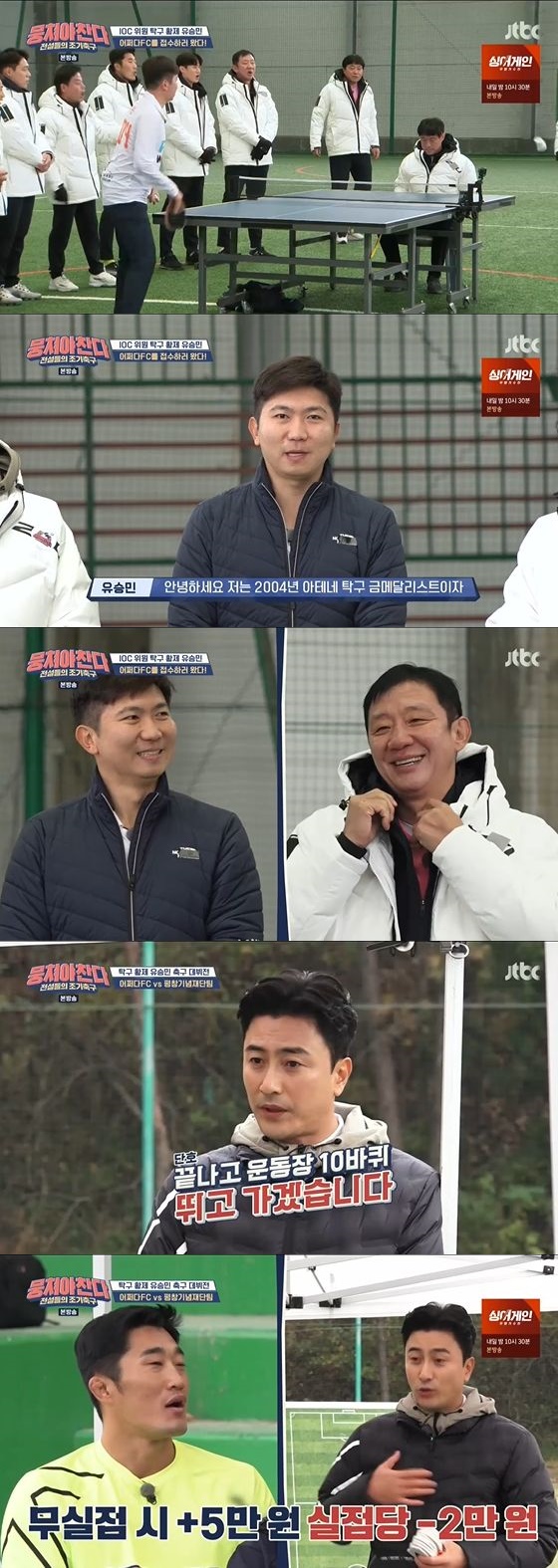 '뭉쳐야 찬다'에서 탁구 전설 유승민이 축구 그라운드를 점령했다.